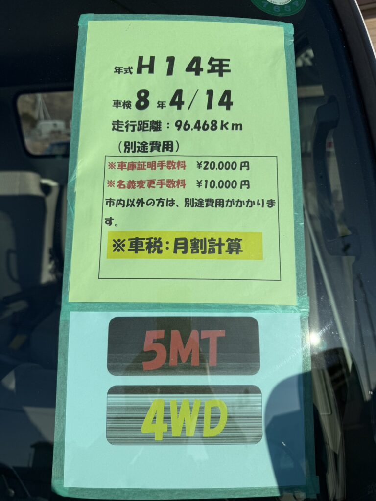 自動車 トヨタ ダイナ 車両情報 本体価格 140万円 支払総額 143万円 走行距離 96,468㎞ 年式(初度登録年) 平成14年 エンジン種類 ー 駆動方式 4WD AT/MT ー 乗車定員 名 ドア数 排気量 cc 修復歴 ー 車検 令和8年4月14日 整備状況 装備仕様 5M/T 4WD A/C付き 備考 名義変更料等の諸費用かかります(支払総額に含みます)。 市内以外の方は、別途費用がかかります。 前の事例 一覧へ戻る